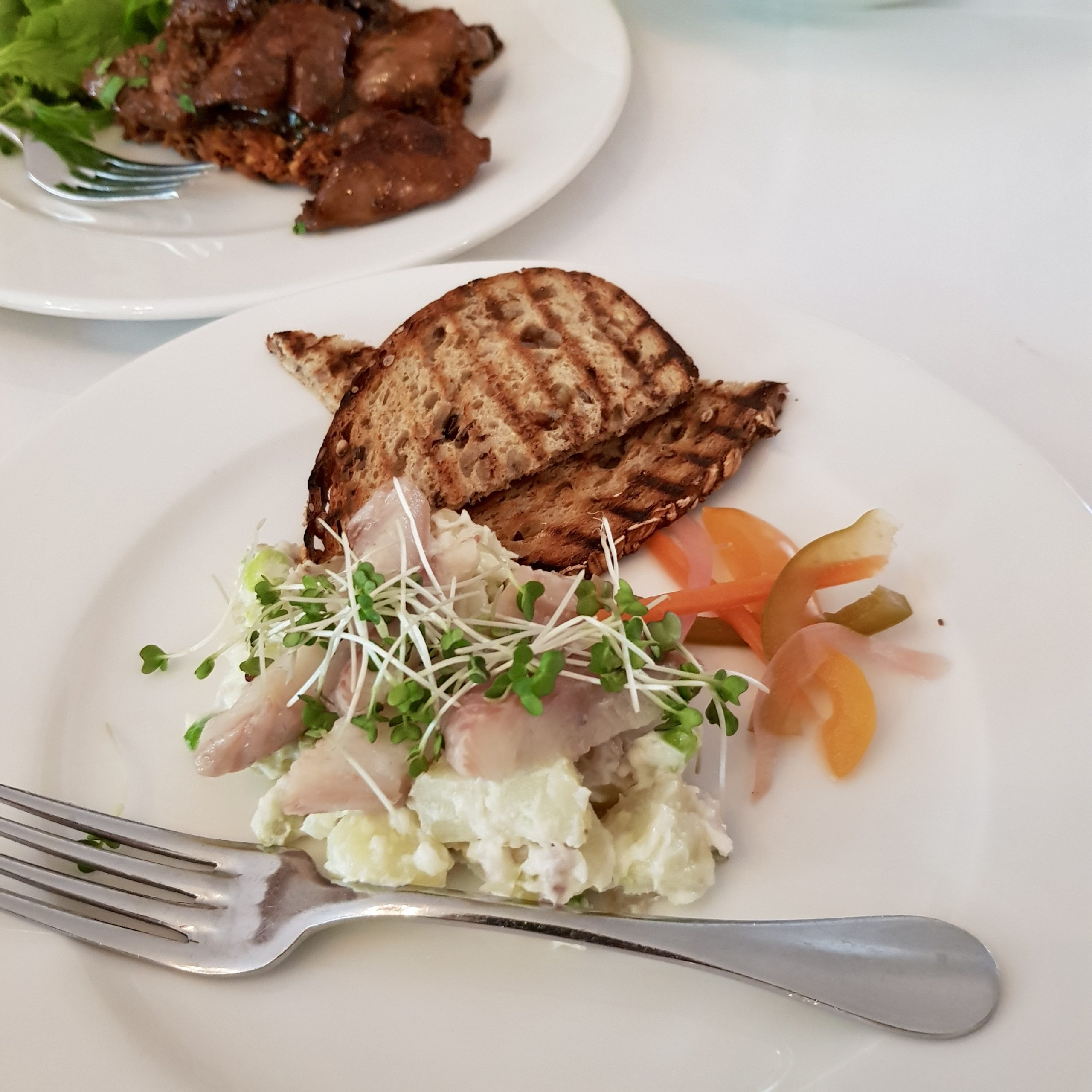 Mediocre smoked eel served with toast, potato salad and pickled vegetable. £9.50