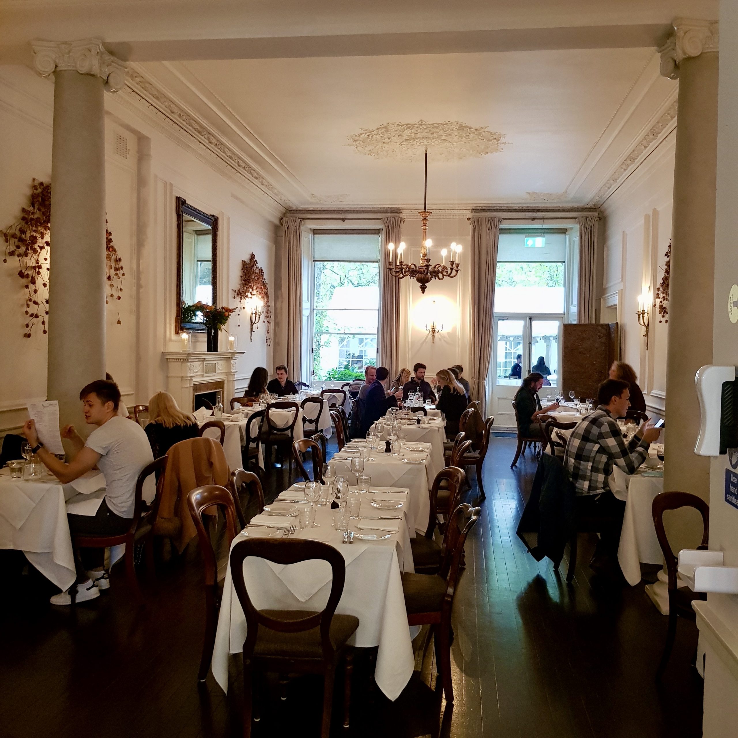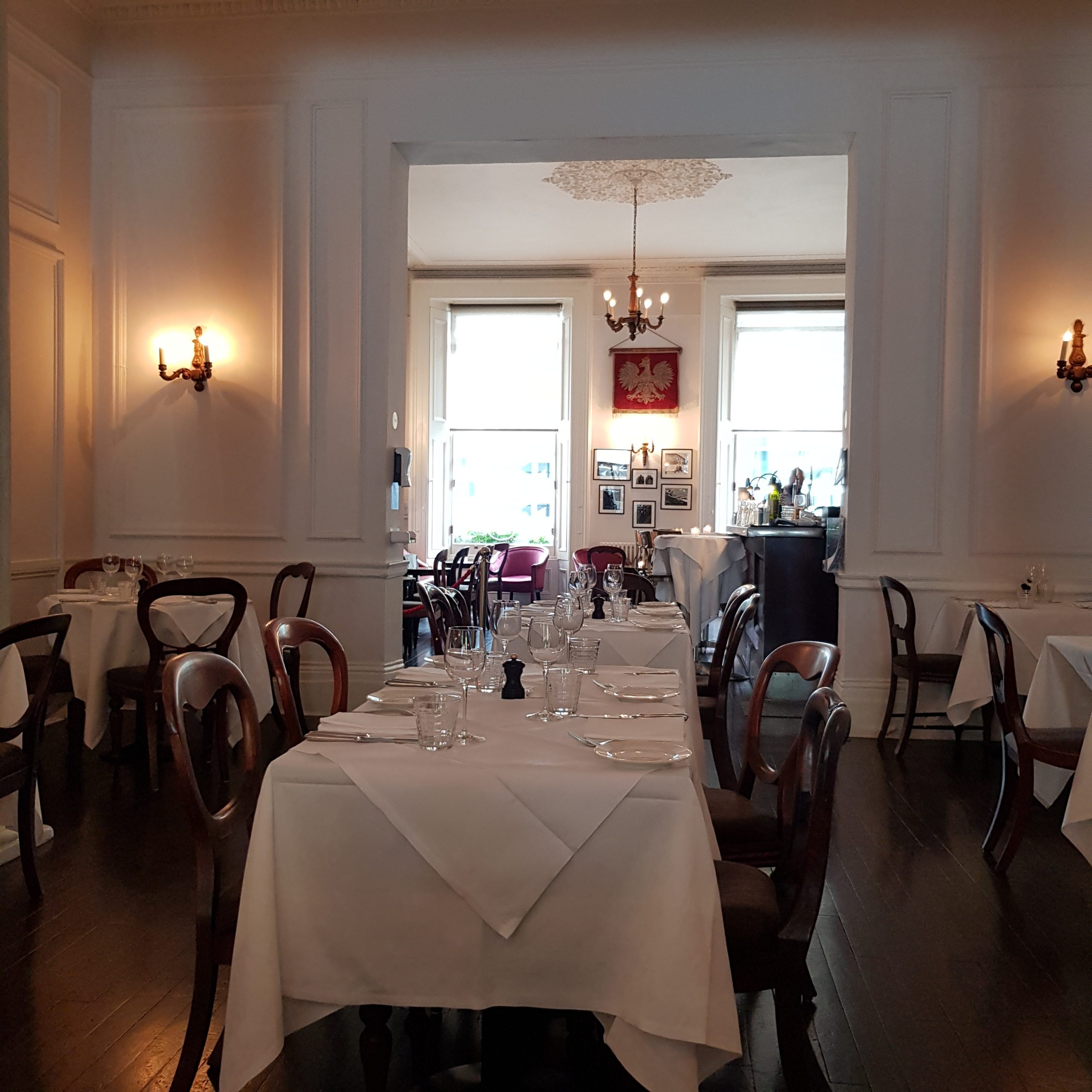 Ognisko is a distinguished white table cloth restaurant. It is located on the ground floor of one of the majestic Georgian townhouses on Exhibition Road facing the Imperial College next to the Science Museum & Natural History Museum. The main dining hall is formal, grand with its high ceiling and dark wood floors but understated with its simple deco and plain white colours.