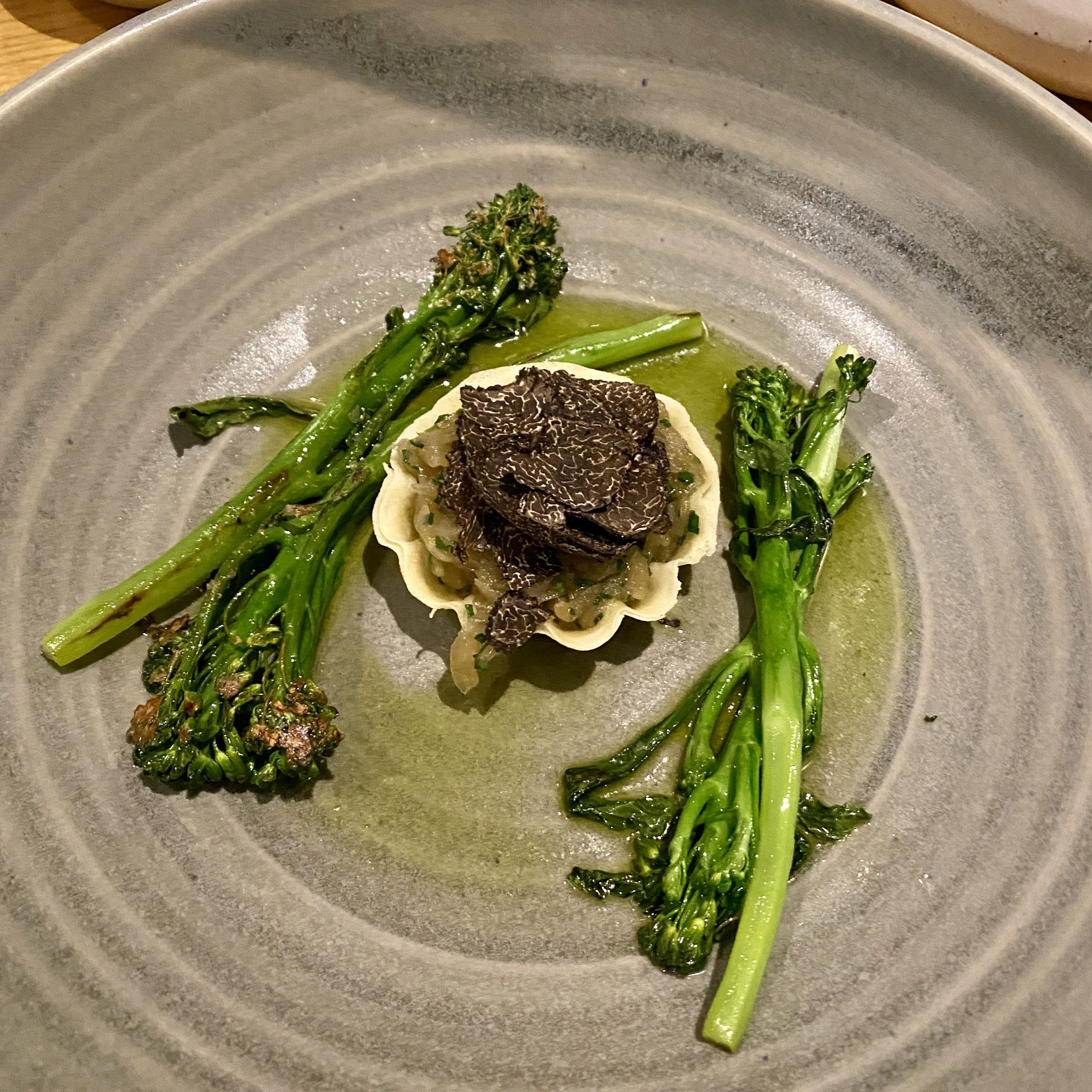6. Roscoff onion tart with Australian black truffle and tenderstem broccoli