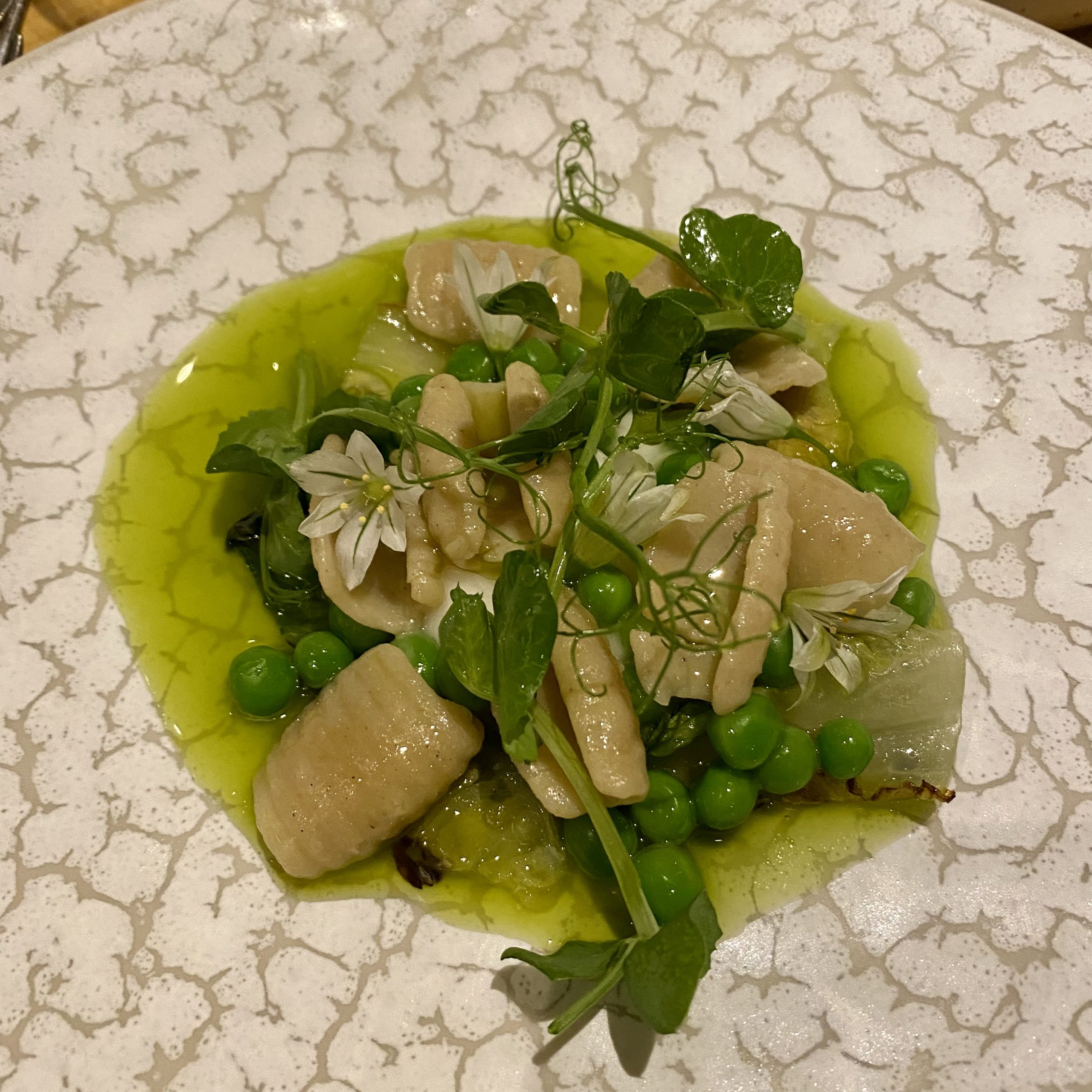 5. Chestnut Gnocchetti with “cream cheese”, pea, mint and lettuce