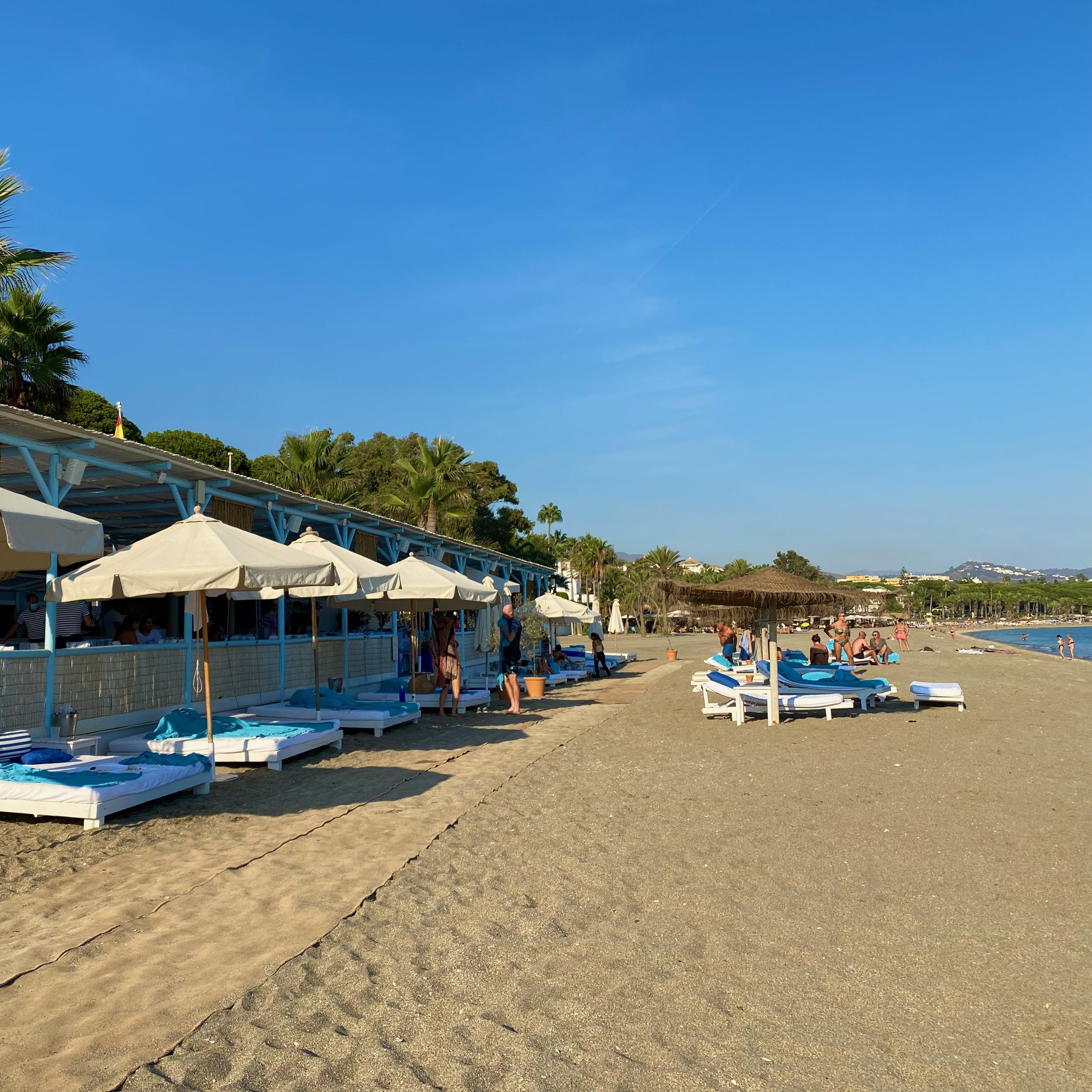 It is connected to the rest of Marbella via a 4-lane carriageway, N-340, on the north entrance and a pedestrianised palm tree-lined seafront promenade on the south exit. Crossing the promenade from the hotel will bring you to the beautiful golden sand beaches of Playa Casablanca and Playa de Nagüeles where you will find hotel guests-only deck chairs and chiringuito (grilled seafood huts). Famed Puente Romano Beach Resort (puenteromano.com), Marbella Club’s sister hotel, is a 12 minute walk west (800m).