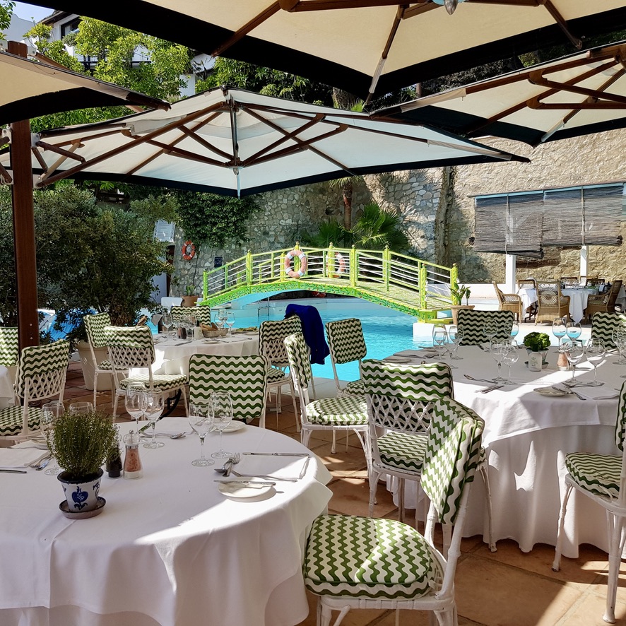 But it is not just serenity, Marbella Club is also about fun and play. The latest addition to that is a newly renovated El Patio restaurant. It is a lush, bright and colourful space that has seamlessly combined outdoor and indoor dining. With bold floral print soft furnishing, wooden gazebo, hanging ferns, colourful vintage posters and some throwback photos from the 1950’s – there isn’t a better place to enjoy a fun relaxing summer days.