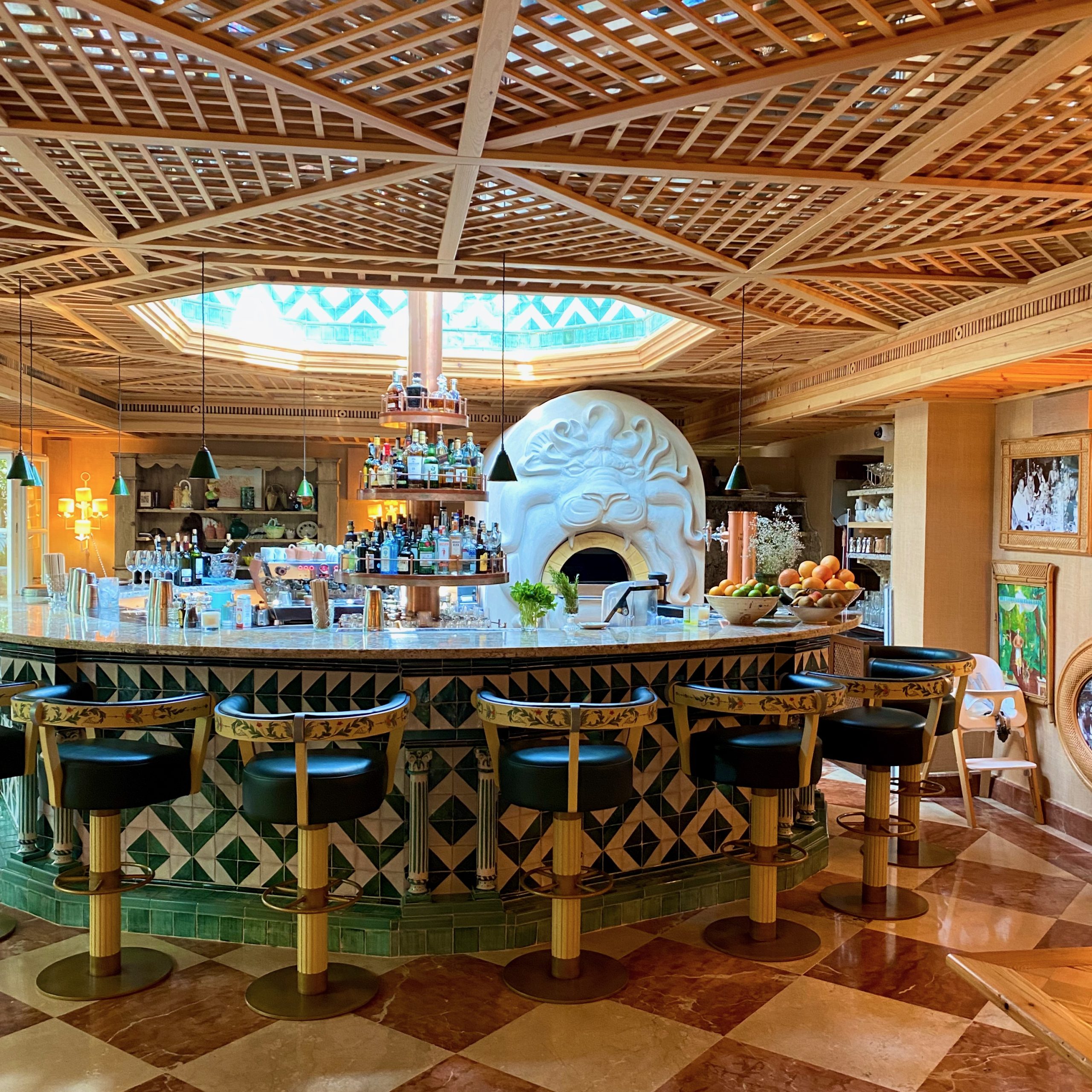 If it does get a little bit chilly outdoor in the evening, it is time to take the party into Rudi’s Bar. A short dash from the Summer Bar or El Patio and you are in an over-the-top cosy drinking den. It is designed in the honour of Count Rudi – the General Manager of Marbella and the life and soul of Marbella Club alongside Prince Alfonso.