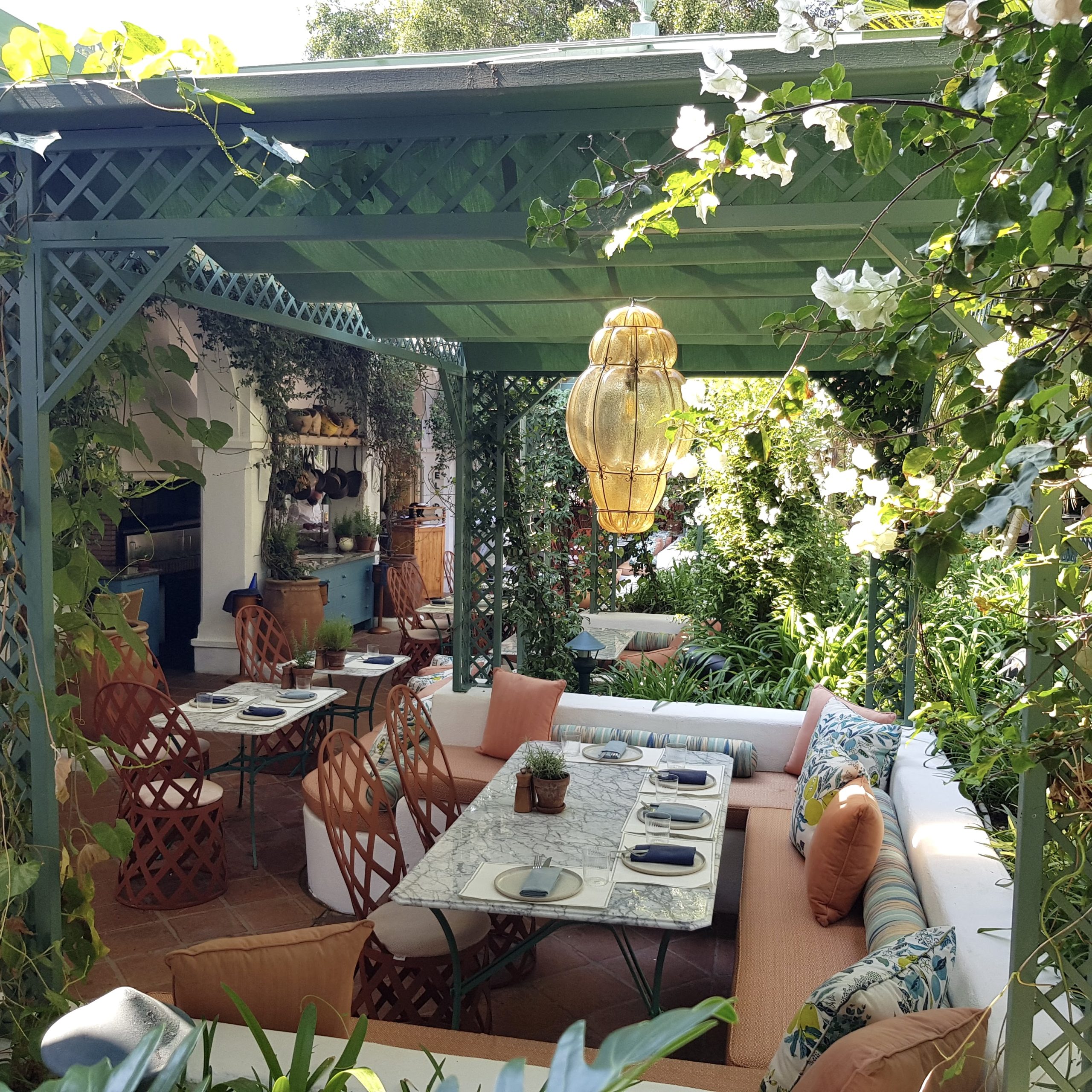 A wonderful lively casual dining venue. This vibrant, relaxing all-day dining spot is full of character. The pergolas framed outdoor seats among a lush garden are perfect for laughter and fun while chowing down the gorgeous marinated sardines or wood-roasted organic chicken. The outdoor area seamlessly integrate with the cosy indoor area decorated with floral print soft furnishing, vintage images & photos and a wood-fire pizza oven. All-day service.