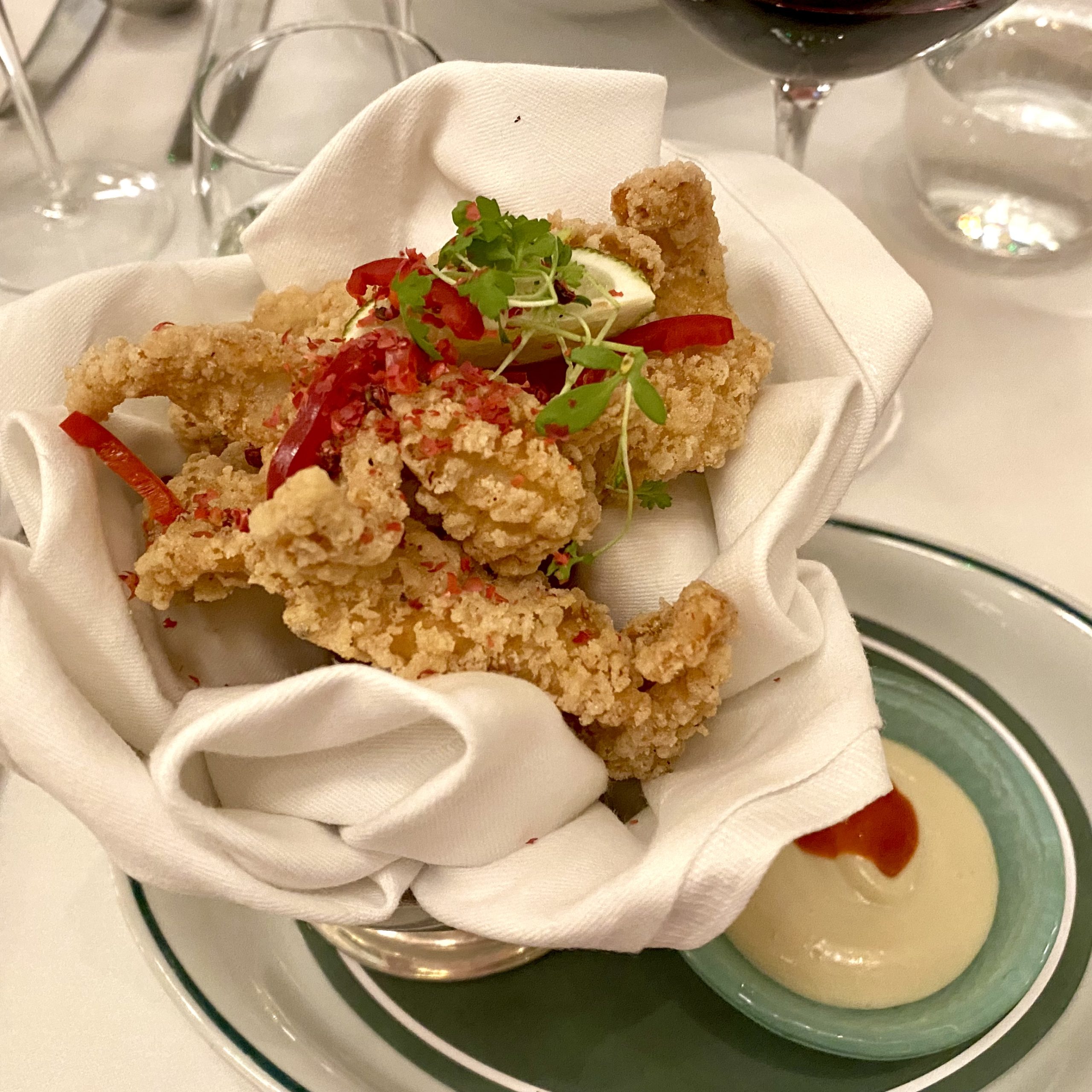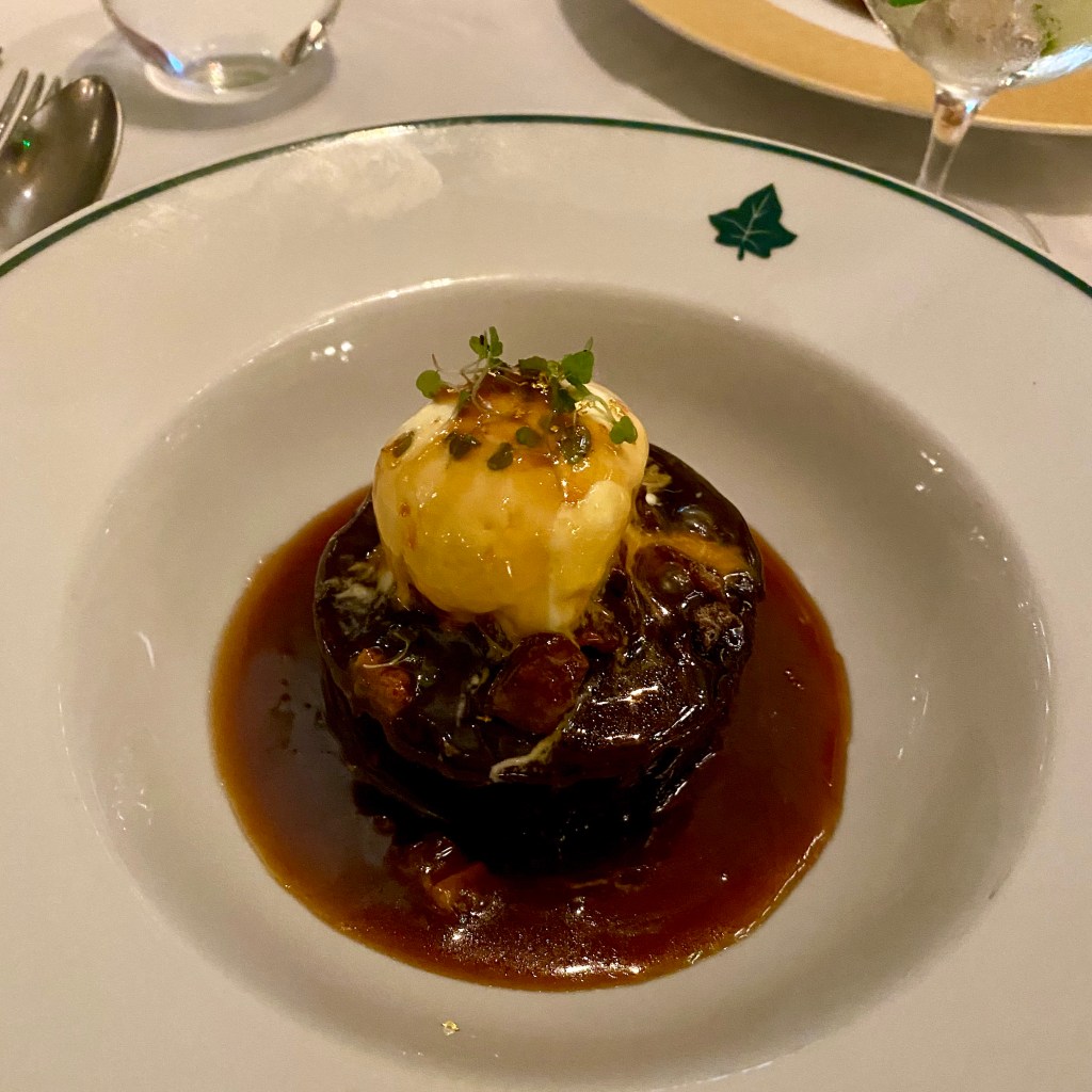 On the menu, a small range of bubbles, a few standard cocktails with an Ivy twist, and a range of different G and T’s. There is also a good range of wines and an extensive bar with knowledeable mixologist who can make something up to your exacting requirements.