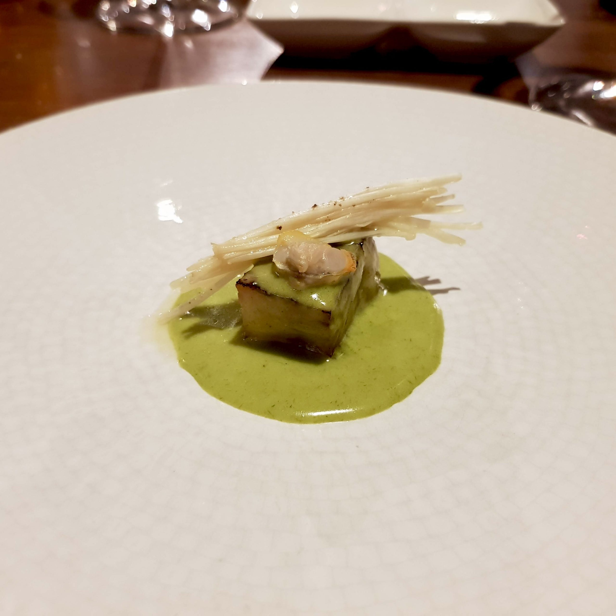 Love the rich smoky cod cream, but the wafer let the dish down. Think the wafer might have gone stale or overexposed.