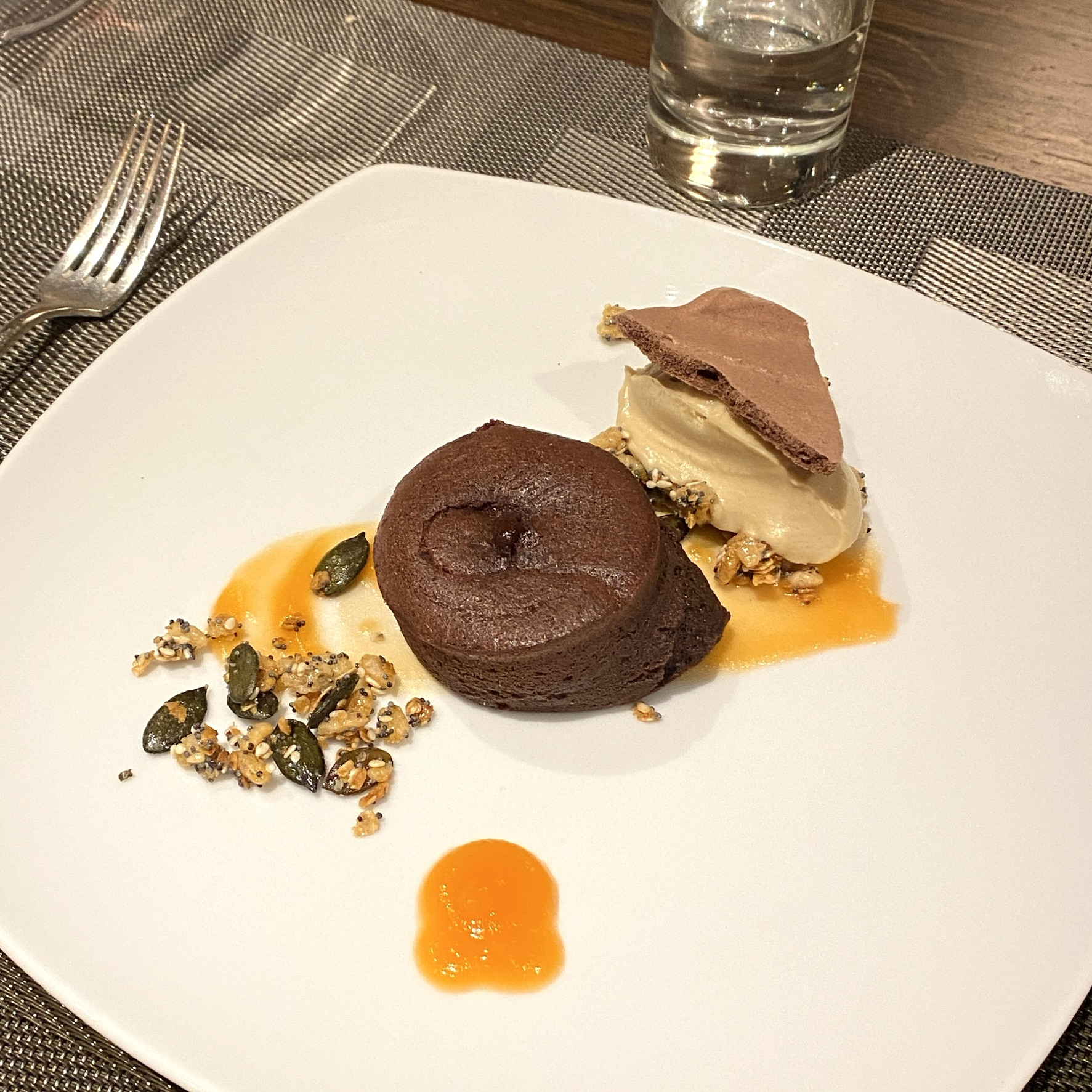 Disappointed as the lava was flowing out from the cake as we sliced it open. The flavour was good and had a decent fluffy texture. CHF16
