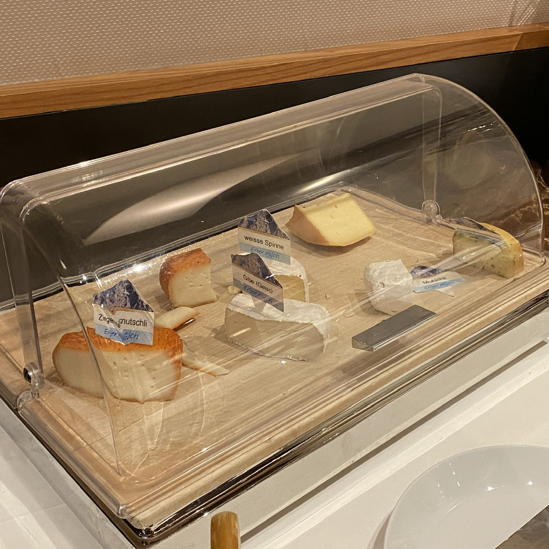 1980’s elegance. The restaurant is within Hotel Belvedere, one of the pioneering hotels within Grindelwald. The dining space has a 1980’s elegant design with mustard yellow chair covers, dark wood plank flooring and big heavy curtains. It is a bright space and has high ceiling with over-sized wooden ceiling beams. It feels a touch cold and formal which they tried to lighten with beautiful pots of orchids.