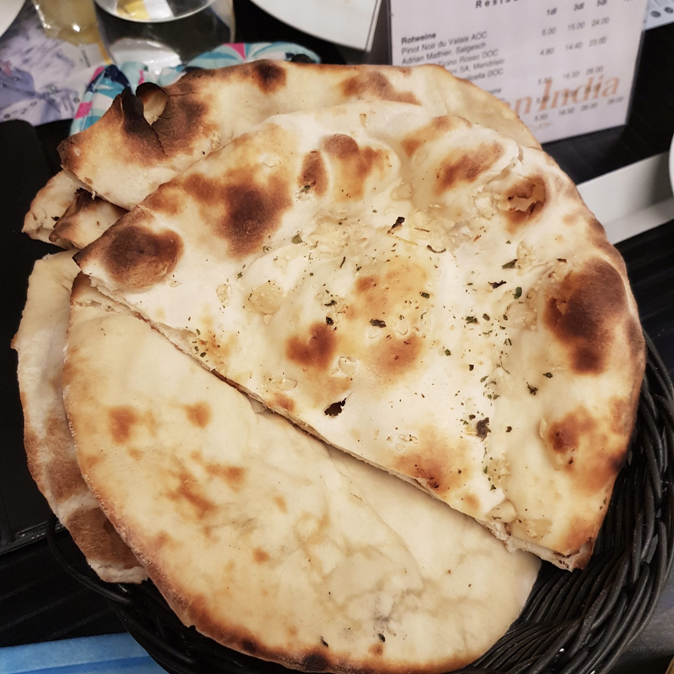 Whole wheat flat bread freshly baked in clay tandoori oven. Decently made, but could do with a bit more elasticity and salt. CHF4.50