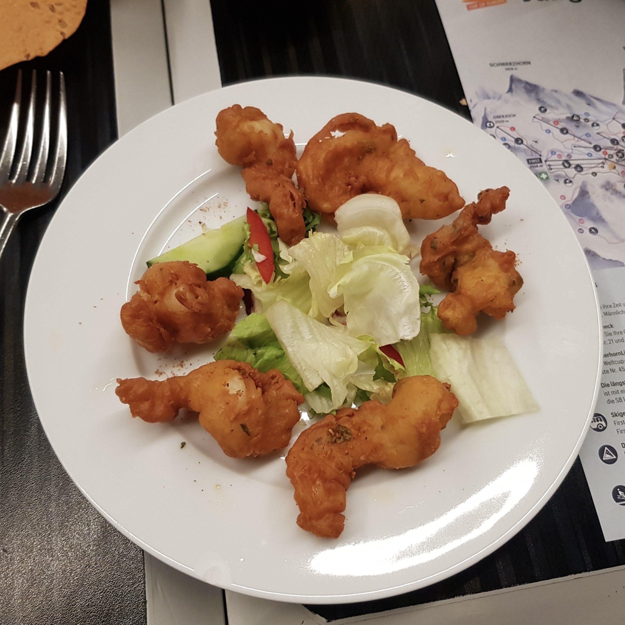Deep fried prawns coated in chickpea flour batter. The batter was better here, it was crunchy and tasty. CHF13.50