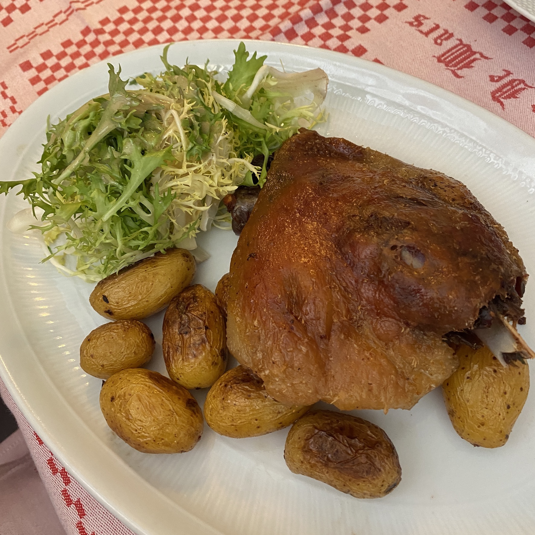 Confit de canard maisonm grenailles confites & salade frisée (Duck confit with sauteed potatoes & curly lettuce) (Do not recommend)