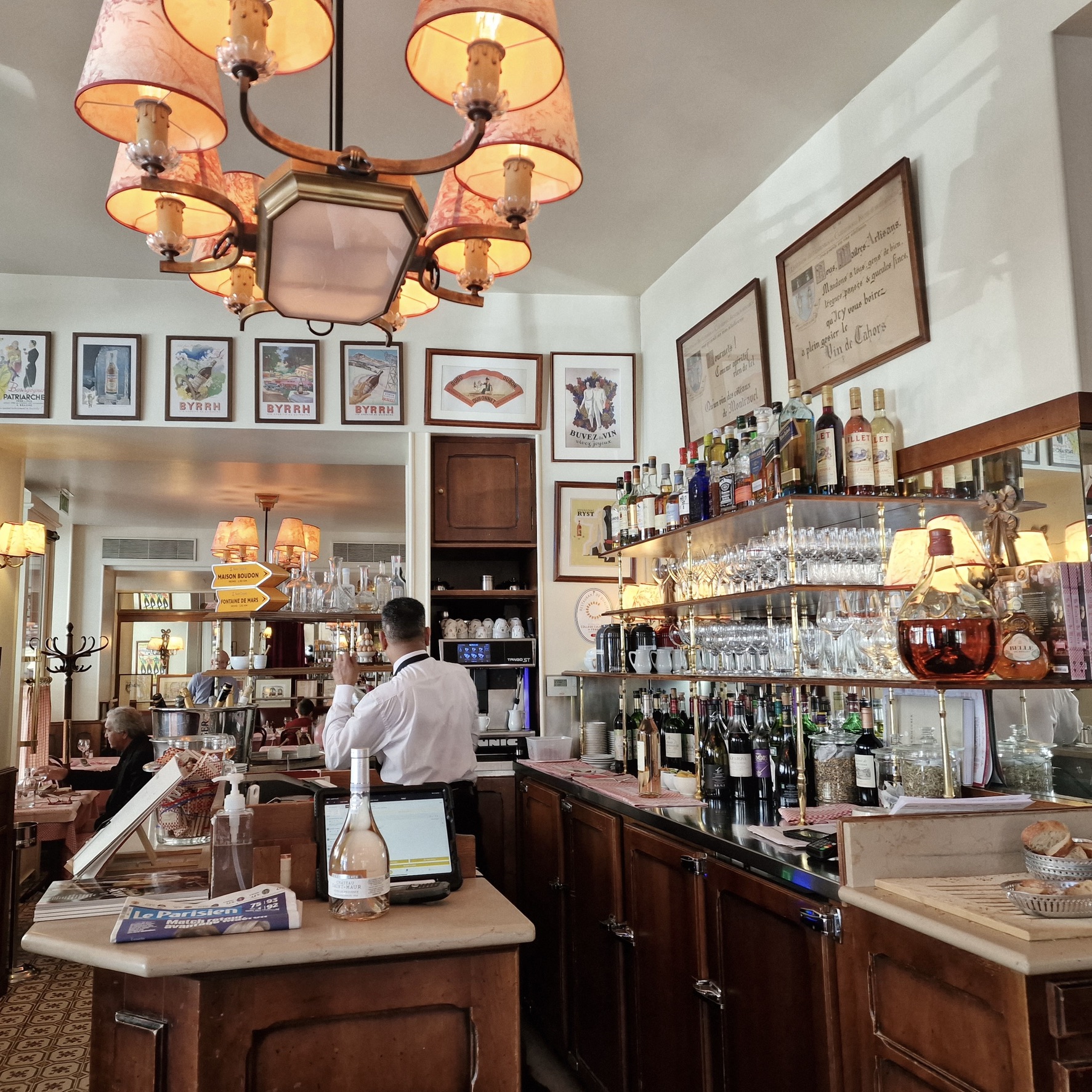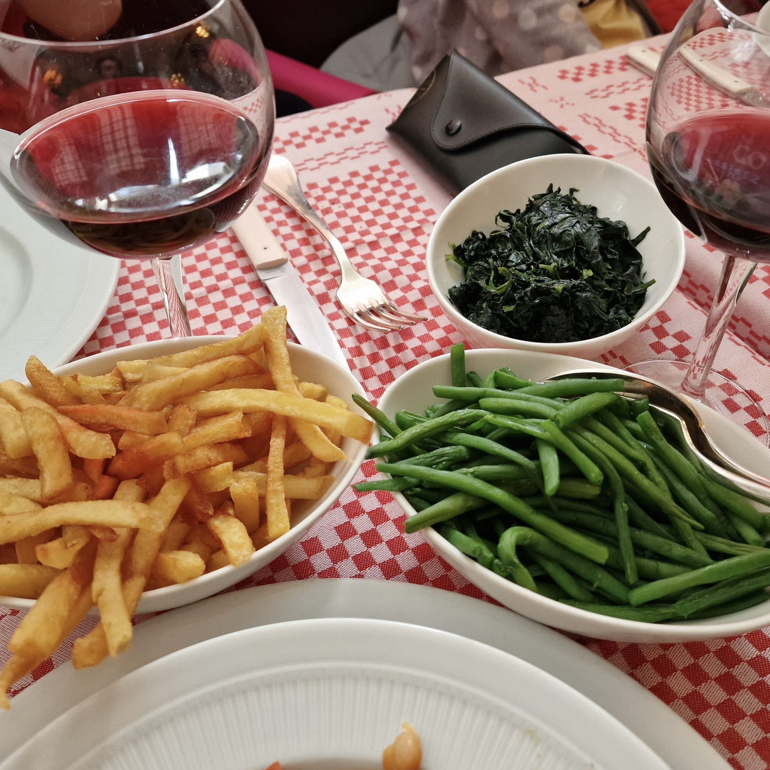 Locals alongside tourists. A good number of French office workers sharing a laugh with colleagues as well as families on holiday tucking into the French classics.