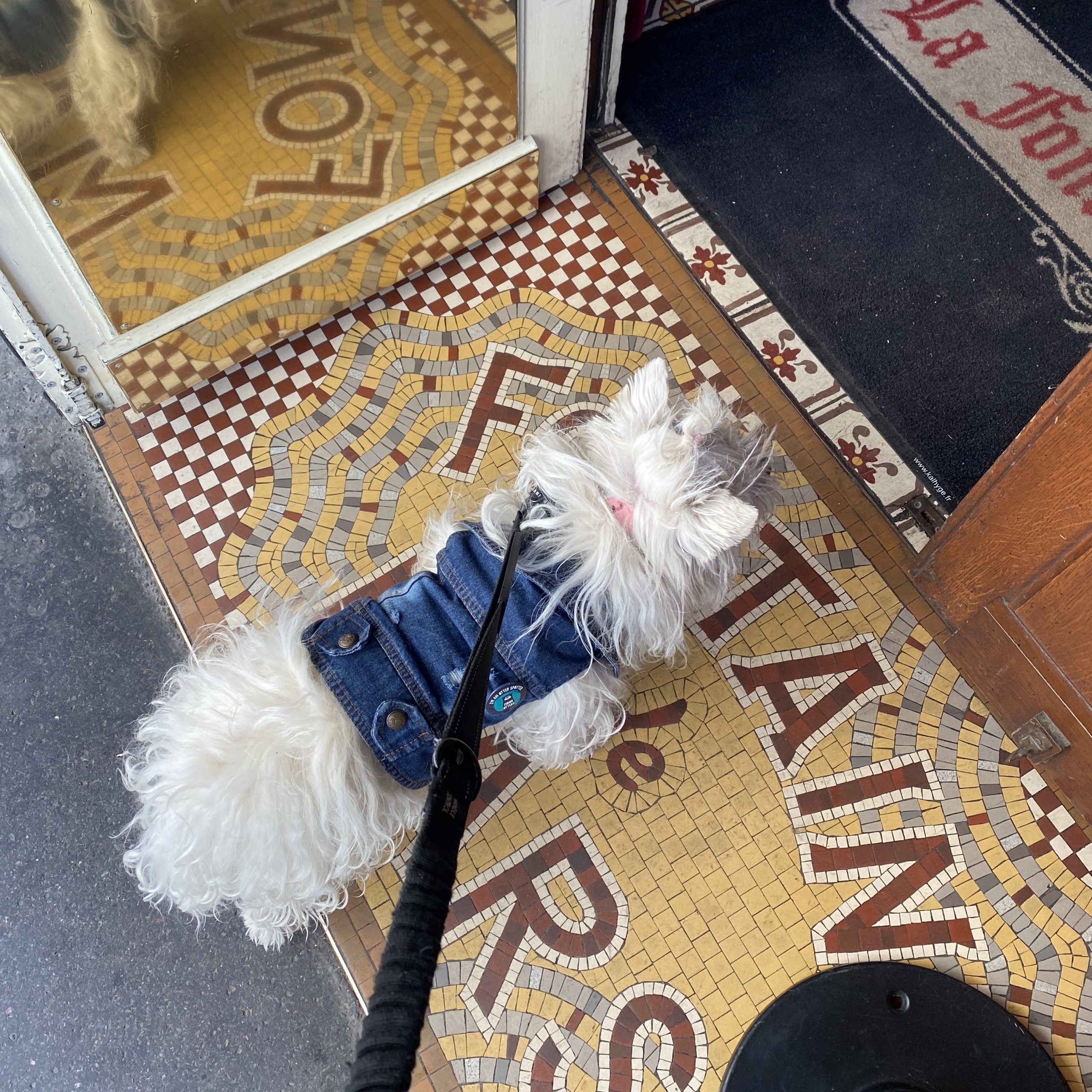 Yes. As with most restaurants in Paris, dogs are welcome outside as well as inside the restaurant.