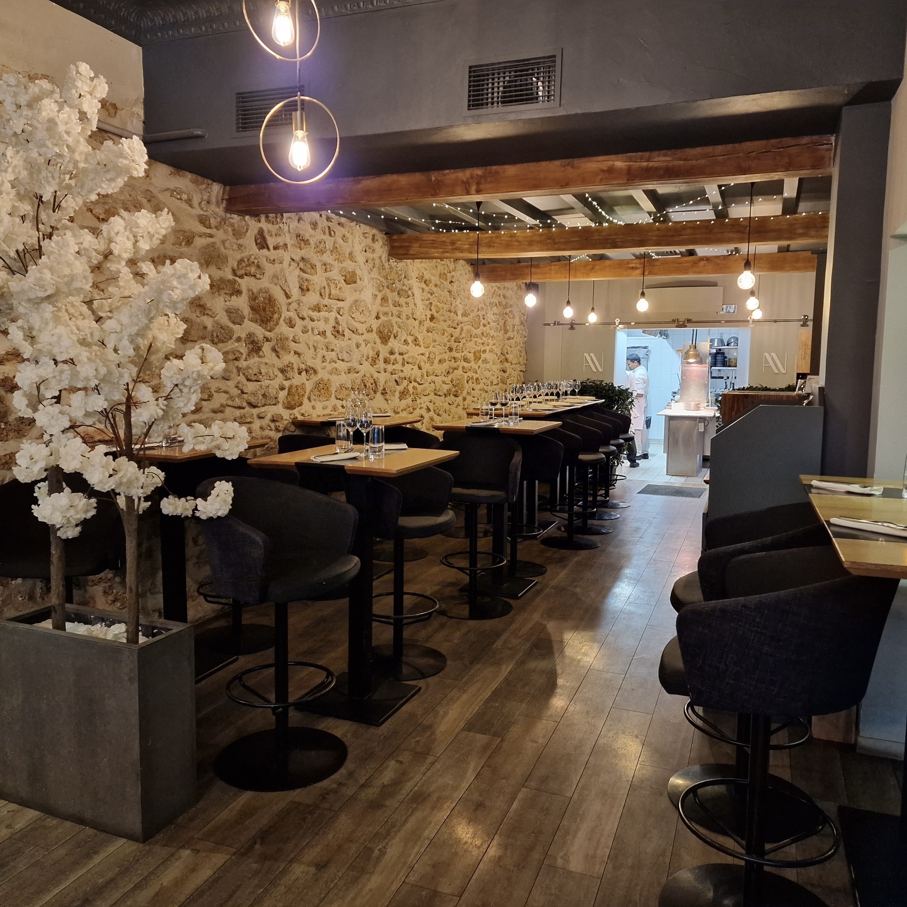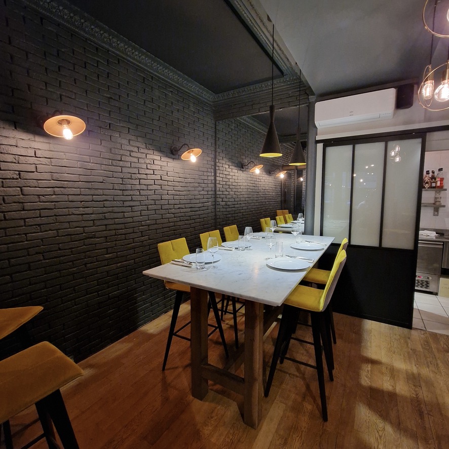 Smart & elegant. Arnaud Nicolas has an air of sophistication and precision to it. The shopfront is smart and you are greeted with meticulously arranged pies and terrines gracing the shop window. Inside, you will find neatly arranged cherrywood tables with grey and yellow velvet armchairs against manicured exposed brick walls, grey ceiling and designer lighting.