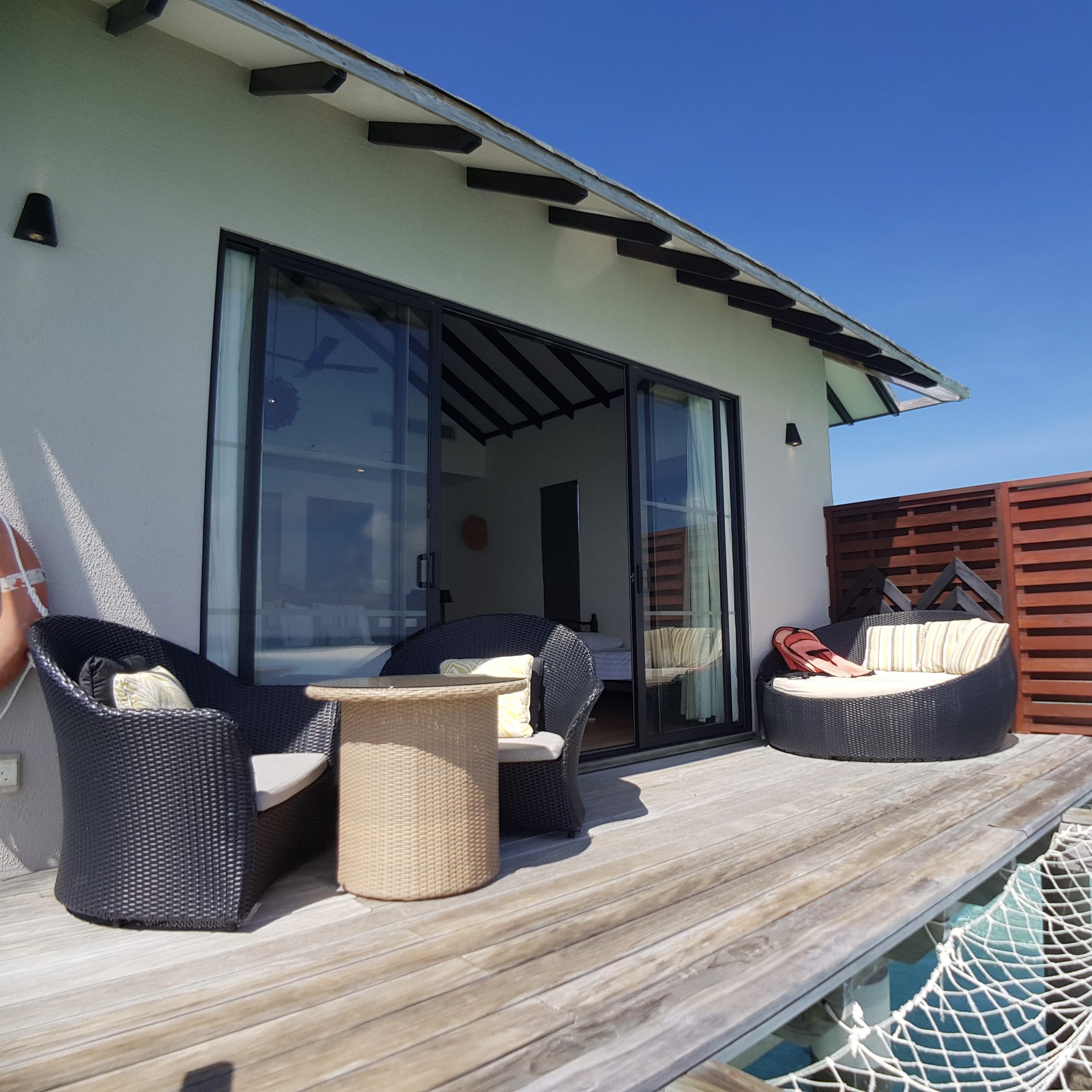 You have to walk through the room to get to the bathroom after snorkelling from the terrace. Make sure to leave some towels on the terrace before heading out. Also, apart from the Overwater Pool Suite, the Overwater Villas do not have an outdoor shower on the terrace to rise off the seawater.