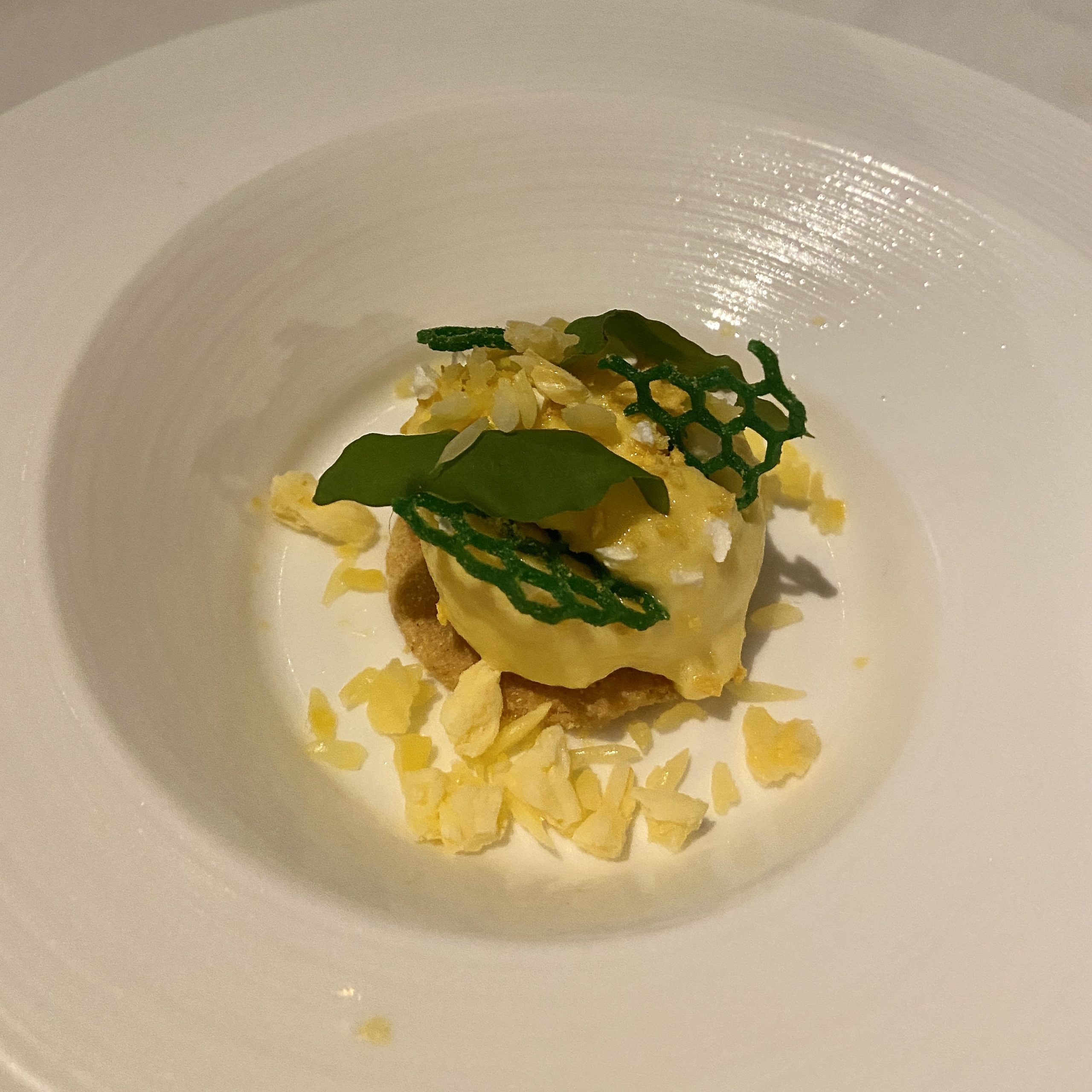 A pleasant palate cleanser. Refreshing and sour clementine mousse, tequila sorbet, orange sherbet with liquid nitrogen freeze-dried orange on a sablé biscuit. Children’s version were made with pineapple sorbet instead of tequila.