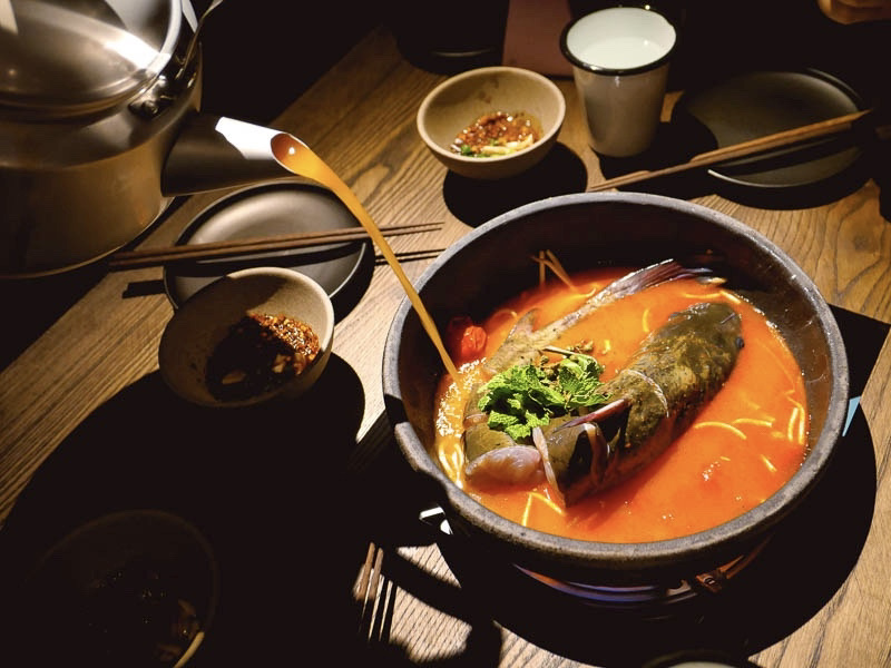 If you can pack in some supper, be sure to try the Employees Rice with Fermented Sour Soup, a hot and sour broth with minced pork and rice. The hotpot upstairs is ideally suited for four or more people. Their signature dish is a hot and sour broth similar to the Employees Rice, but served with a whole, fresh Guizhou river fish.